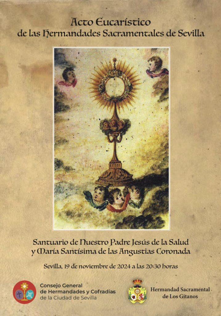Hoy martes 19 de noviembre, a las 20:30 horas, se celebra un Acto Eucarístico de las Hermandades Sacramentales de Sevilla, organizado por el Consejo General de Hermandades y Cofradías de la Ciudad de Sevilla, a través de su delegación de Hermandades Sacramentales, y en colaboración, en esta ocasión, con la Hermandad de Los Gitanos.