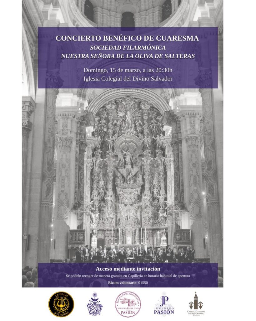 El concierto será a beneficio de la obra de caridad de la Hermandad, a través de la Fundación Asistencial Jesús de la Pasión. Aquellos que lo deseen podrán realizar un 𝐝𝐨𝐧𝐚𝐭𝐢𝐯𝐨 𝐯𝐨𝐥𝐮𝐧𝐭𝐚𝐫𝐢𝐨 vía 𝐁𝐢𝐳𝐮𝐦 al código 01550.