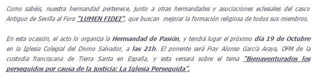 Foro "Lumen Fidei" - Archicofradía Sacramental de Pasión