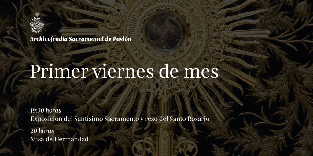 Hoy viernes, a las 19:30 horas, exposición del Santísimo en la Capilla Sacramental, rezo del Santo Rosario y a las 20:00 horas y ante nuestros Sagrados Titulares, misa de Hermandad concluyendo con el canto de la Salve a Nuestra Madre y Señora de la Merced.