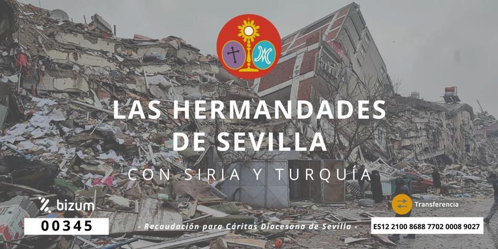 En esta cuaresma, tiempo para ayudar a quienes más lo necesitan, recordamos a nuestros hermanos y devotos que pueden colaborar con El Consejo de Hermandades y Cofradías de Sevilla y Caritas Sevilla ayudando a los afectados por los terremotos de Turquía y Siria. Con tu aportación, estarás haciendo bien a muchos.
