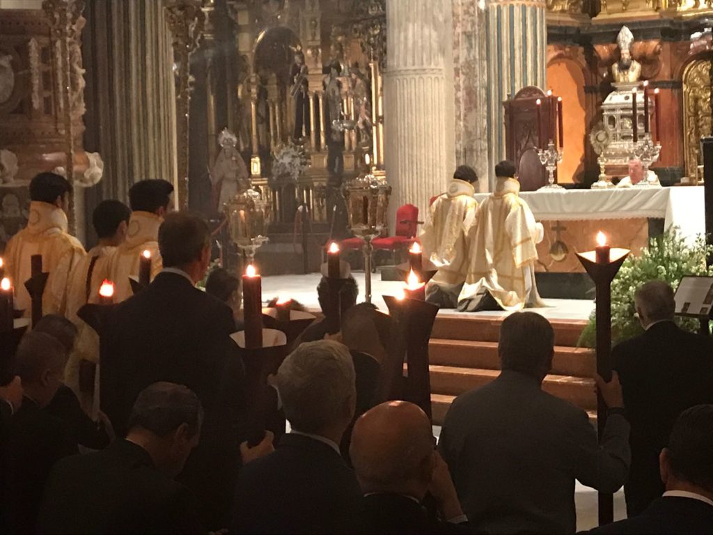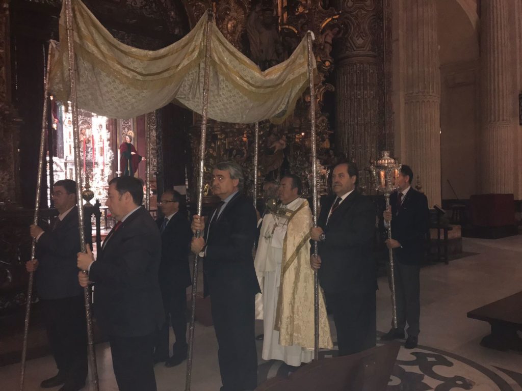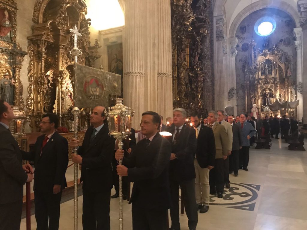 Conmemorando el Centenario de nuestra fusión, el acto fue organizado por la Archicofradía Sacramental con la colaboración de la Sección de Hermandades Sacramentales del Consejo y ante una nave central del majestuoso templo abarrotado de cofrades comprometidos con la devoción al Santísimo, se desarrolló el mismo, presidido por el Rector de dicha Colegial, Don Eloy Caracuel García de Toledo y por Don José Luis Cabello, Hermano Mayor.