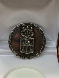 La Hermandad ha realizado una tirada limitada de medallas conmemorativas del IV Centenario del Señor. Han sido acuñadas en metal blanco (a un precio de 40 € unidad) y, por encargo previo del interesado, en plata (110 € unidad). Están presentadas en un elegante estuche de tafilete rojo, dorado a fuego el logotipo del IV Centenario. Se han creado como obsequio institucional, pero la demanda de diversos hermanos y devotos que las han solicitado nos hace ofrecerlas para su compra a los interesados que lo deseen. Hay pocas disponibles, y se entregarán por estricto orden de confirmación de peticiones. Si algún hermano o devoto desea un ejemplar, puede remitir un correo a Secretaría comunicando su reserva.