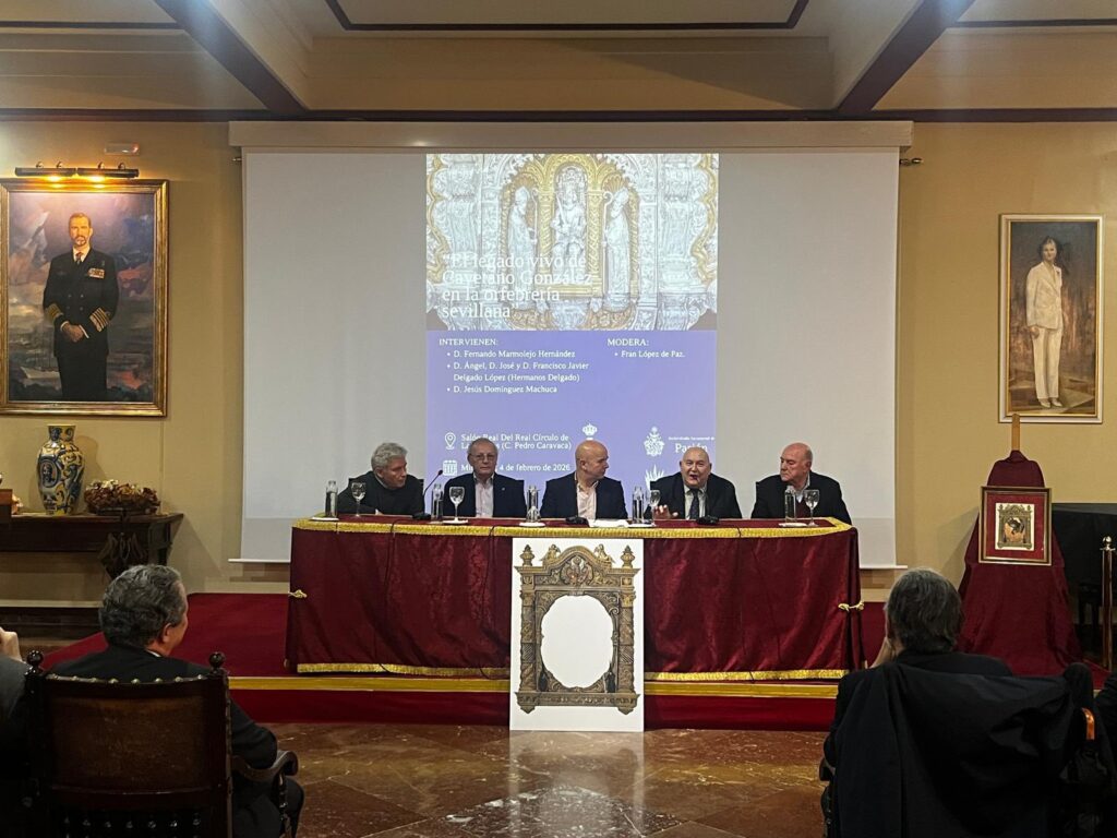 La mesa redonda “El legado vivo de Cayetano González en la orfebrería sevillana” se ha celebrado hoy en el Salón Real del Real Círculo de Labradores, convirtiéndose en un encuentro de gran interés y profundidad en torno a la figura y la herencia artística de Cayetano González.