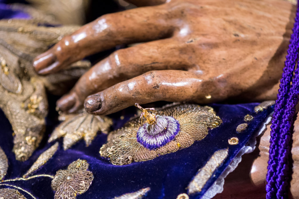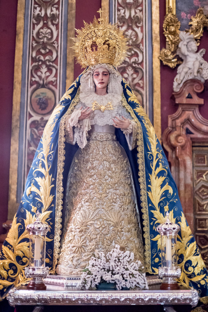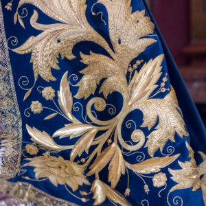 Nuevo manto para la Santísima Virgen y restauración de la túnica de los acantos