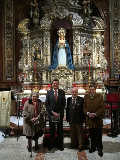 Don Hermenegildo Gutiérrez de Rueda García, número 2 de la Hermandad y de permanente asistencia a la misma desde que su familia lo hiciera hermano hace ochenta y siete años, en 1928, hasta hoy día. Una devoción que ha transmitido a sus hijos y nietos y que lo ha hecho merecedor a lo largo de los años de la confianza de numerosos hermanos mayores para formar parte de la Junta de Gobierno de la Archicofradía, siendo uno de los hermanos de mayor experiencia en la misma.
