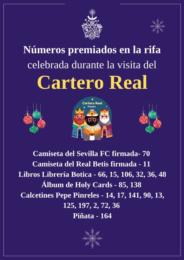 Estos son los números premiados en la rifa celebrada durante la visita del Cartero Real de SSMM los Reyes Magos.