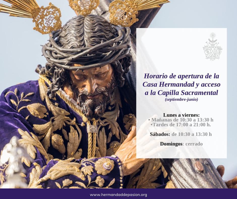 Informamos a nuestros hermanos y devotos que de nuevo es posible acceder a la Capilla Sacramental por Capillería en su horario habitual de apertura.